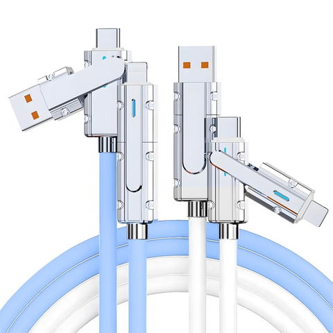 Cable de carga rápida y transferencia de datos 4 en 1 de silicona gordita de 10 pies de 480Mbps para iPhone 16-12, IPad, Mac,Samsung S24